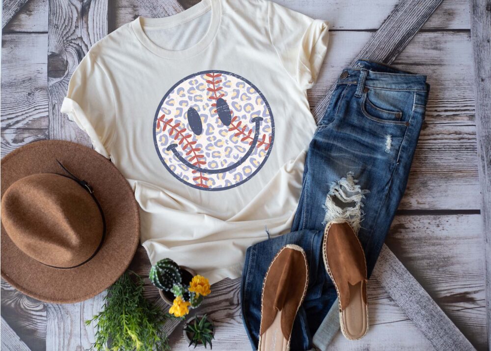 23-0226 – Smile Face Baseball Leopard – DTF Transfer
