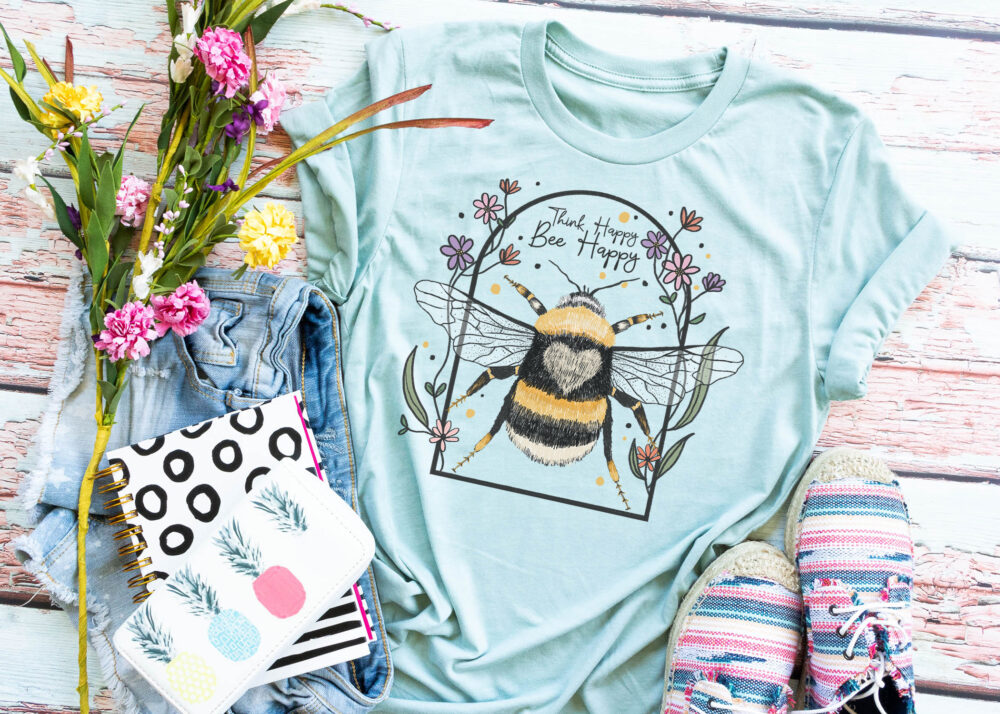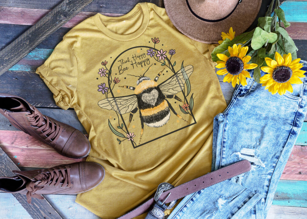 23-0355 – Think Happy Bee Happy – DTF Transfer