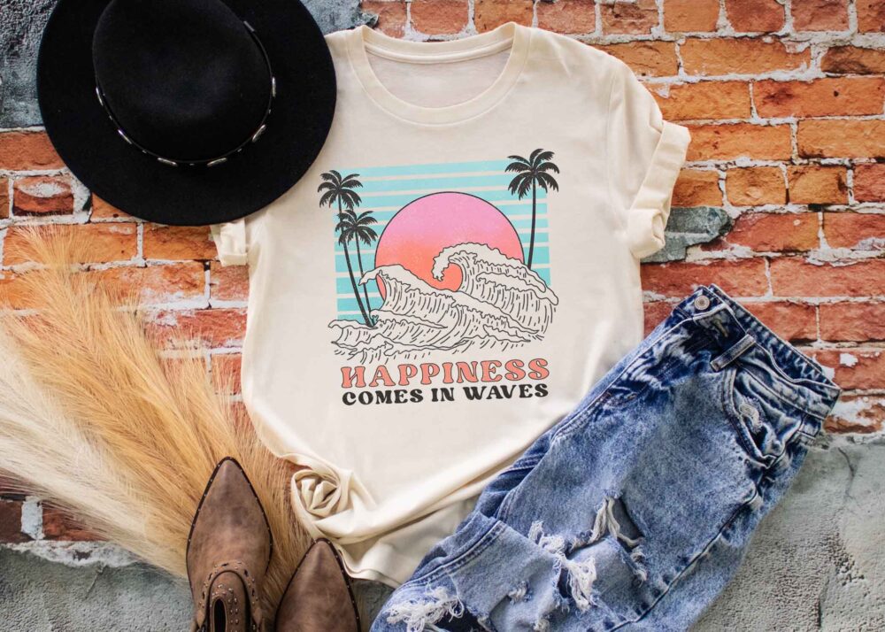 23-0499 – Happiness Comes In Waves – DTF Transfer