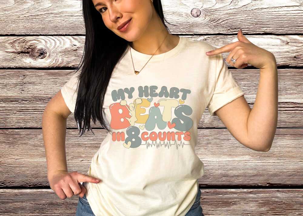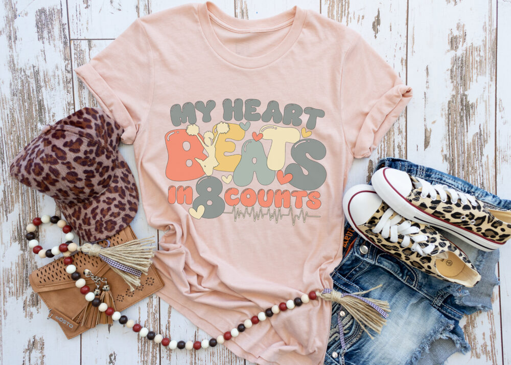 23-0767 – My Heart Beats In 8 Counts – CHEER – DTF Transfer