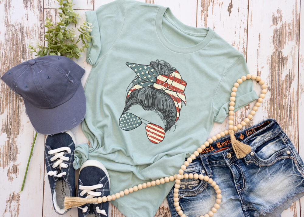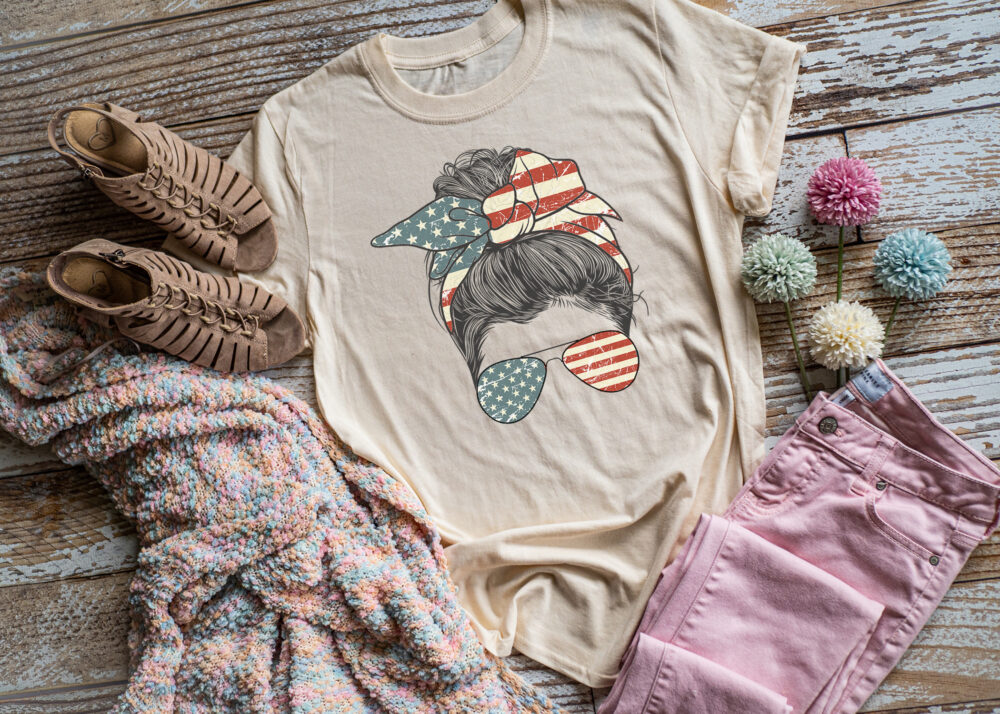 23-0800- All American Mom Messy Bun – DTF Transfer