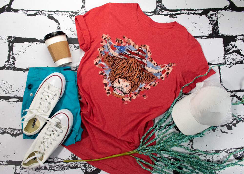 23-0899 – Patriotic Highland Cow – DTF Transfer