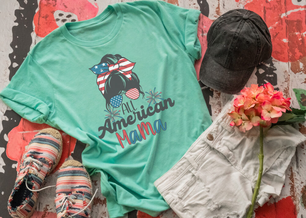 23-0914 – All American Mama Bun And Bandana – DTF Transfer
