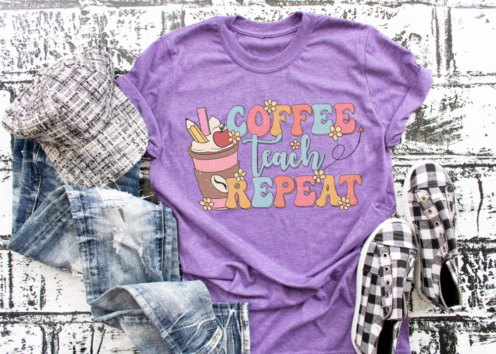 23-0951 – Coffee Teach Repeat – DTF Transfer