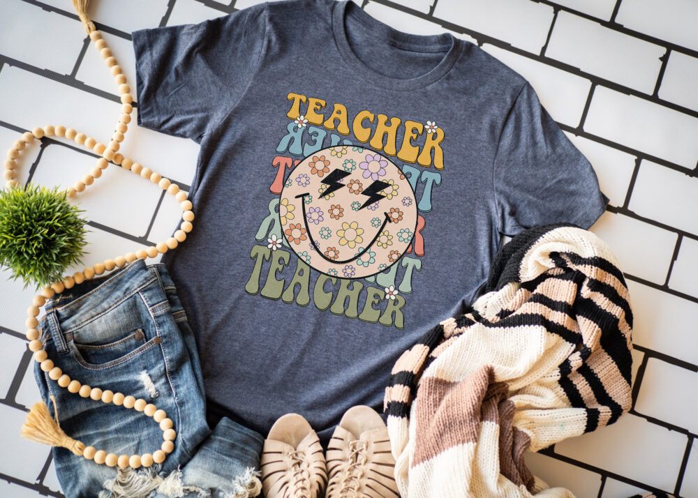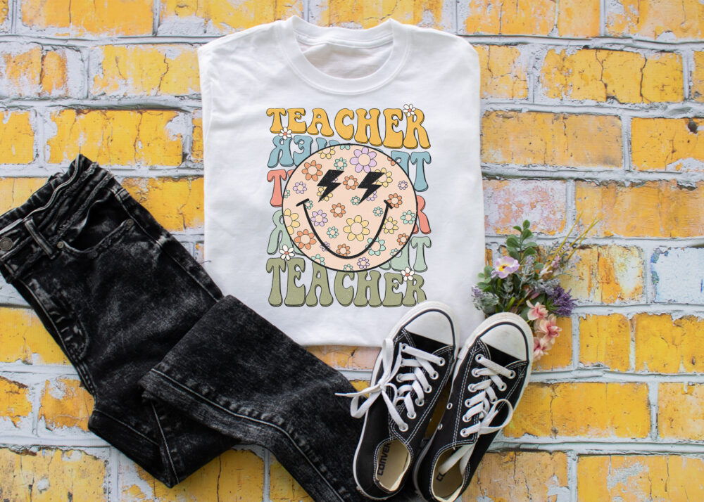 23-0958 – Teacher Retro Floral Smiley – DTF Transfer