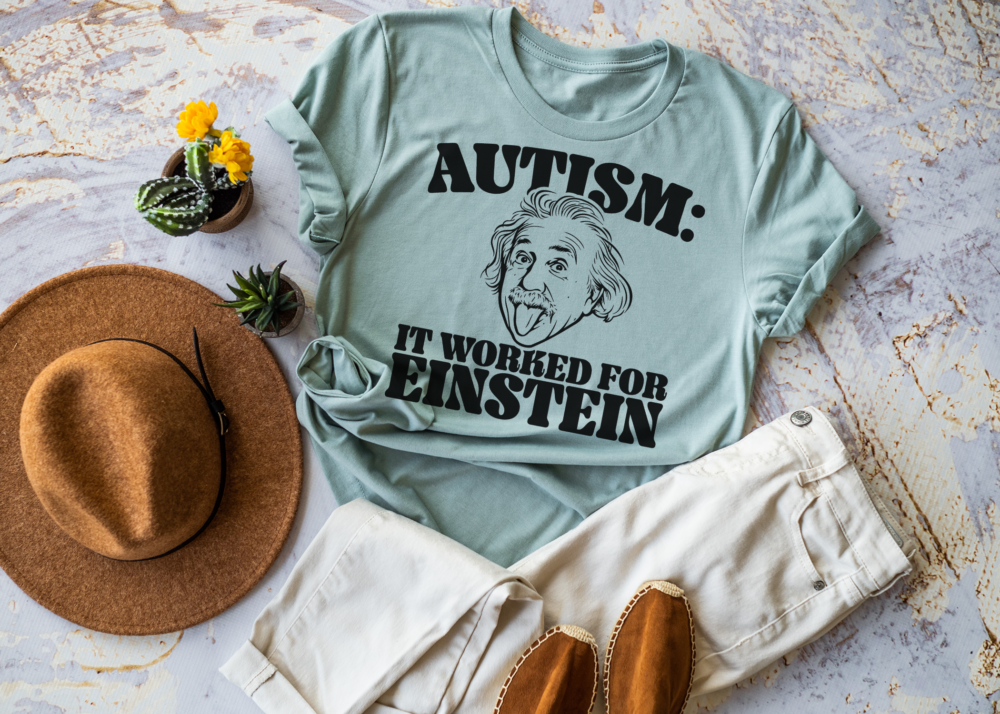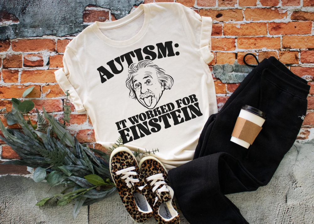 SPT-J1A3 – Autism Worked For Einstein- BLACK – 10.5″ – SCREEN PRINT TRANSFER