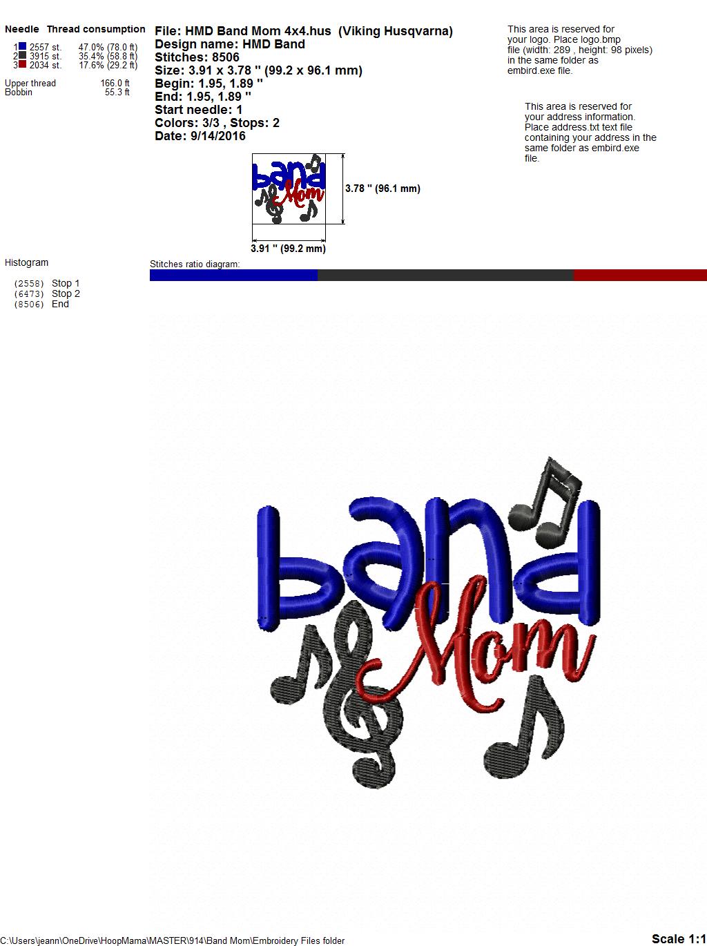 Band Mom – Embroidery and Cutting Options