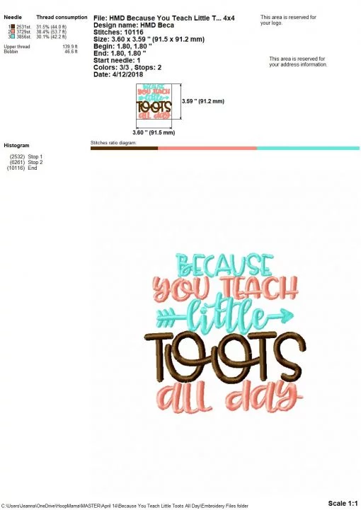 Because You Teach Little Toots All Day – Embroidery and Cutting Options