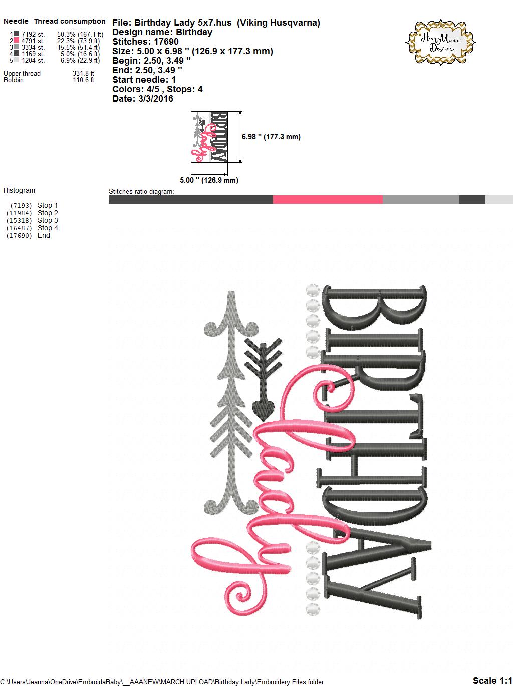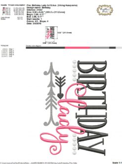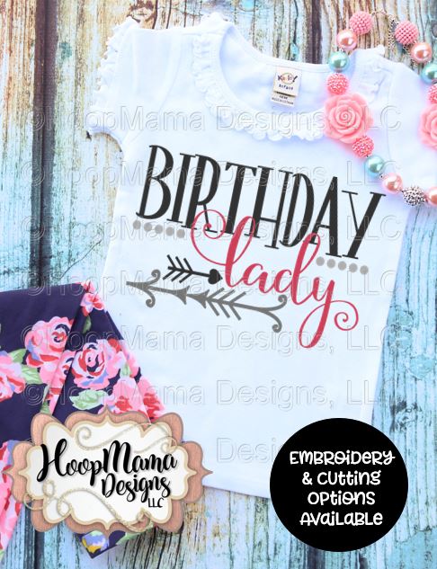 Birthday Lady – Embroidery and Cutting Options