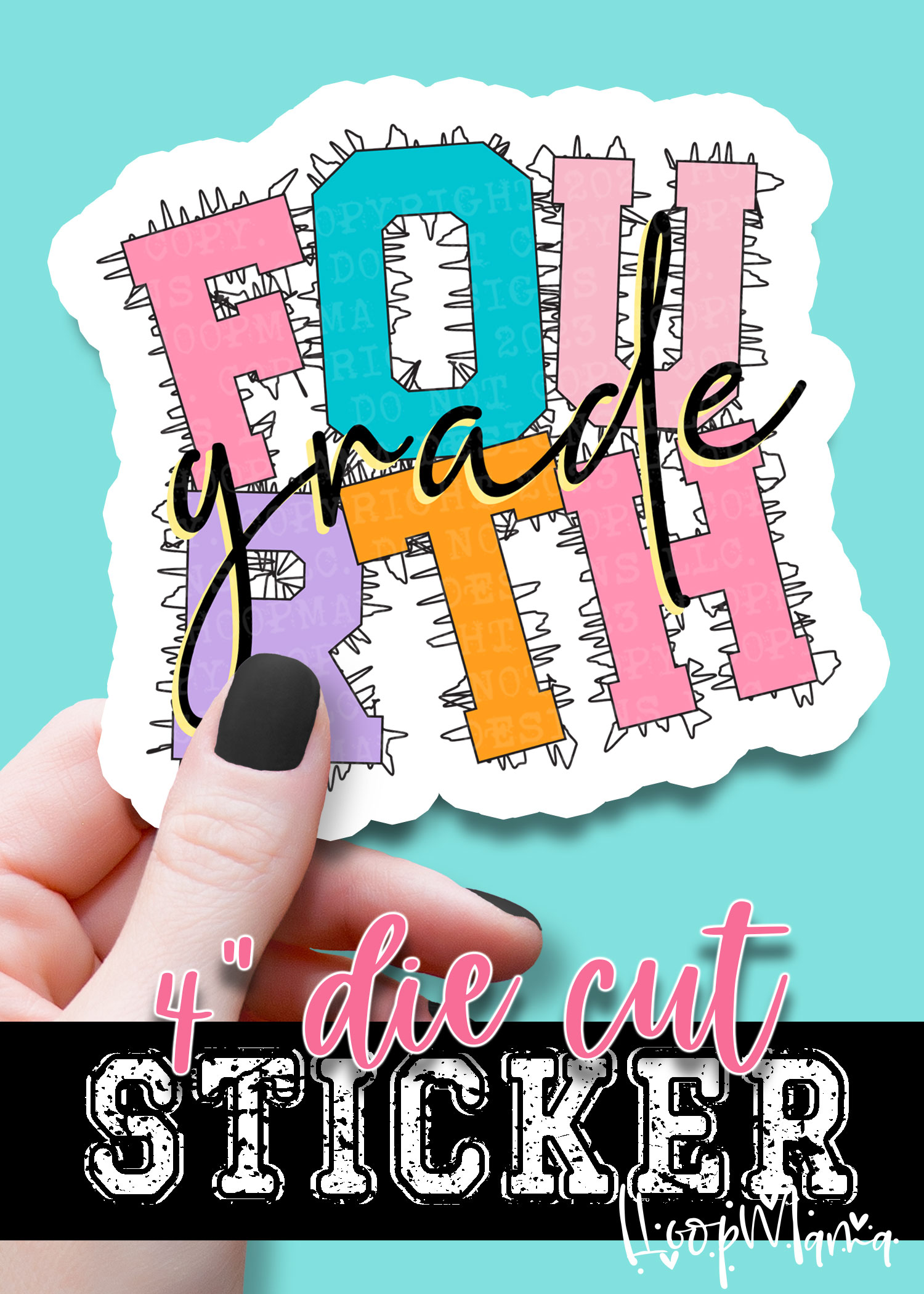 DC-B25-AUG29 – Fourth Grade Scribble – DIE CUT STICKER