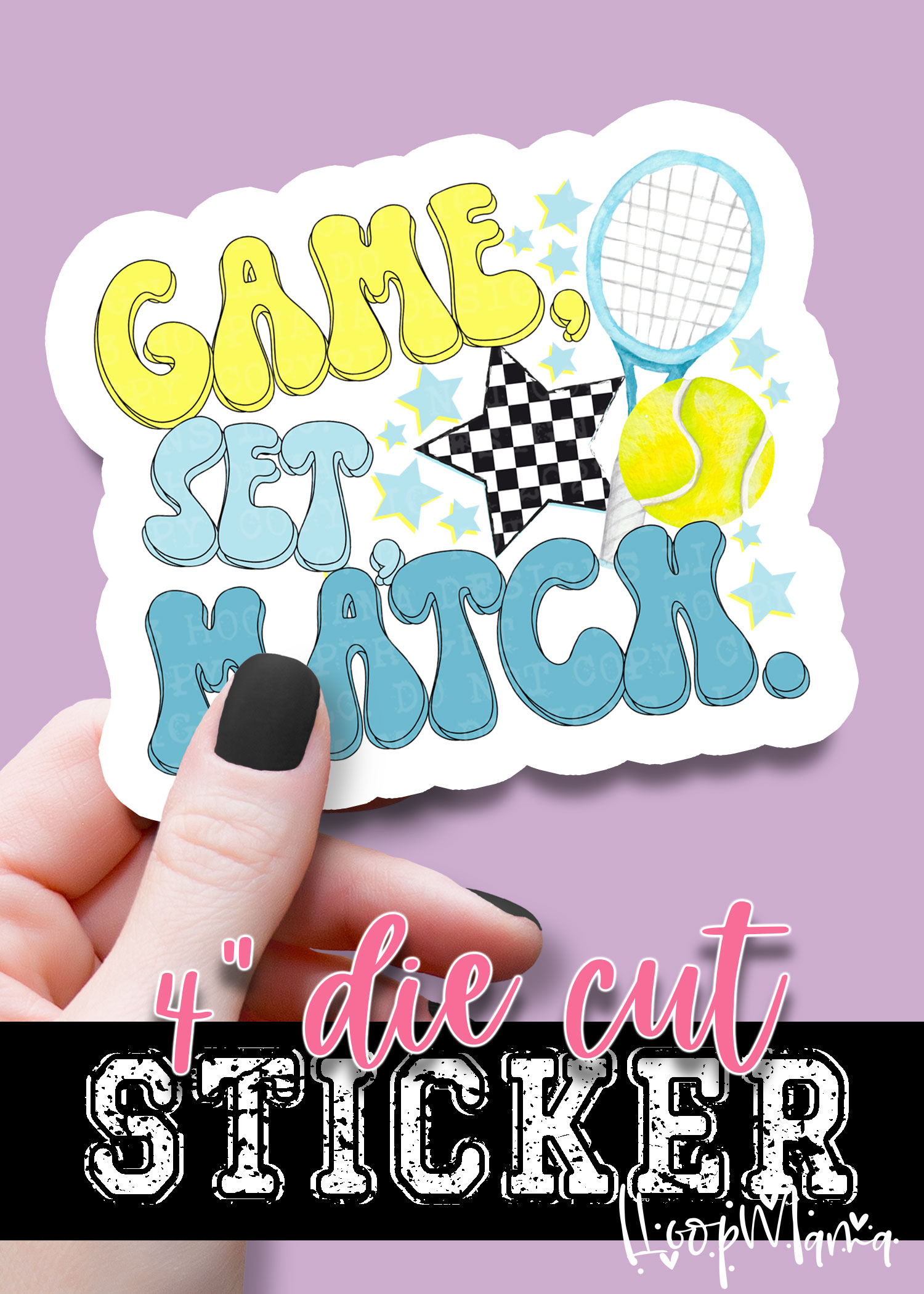 DC-B25-MAY28 – Game Set Match – DIE CUT STICKER