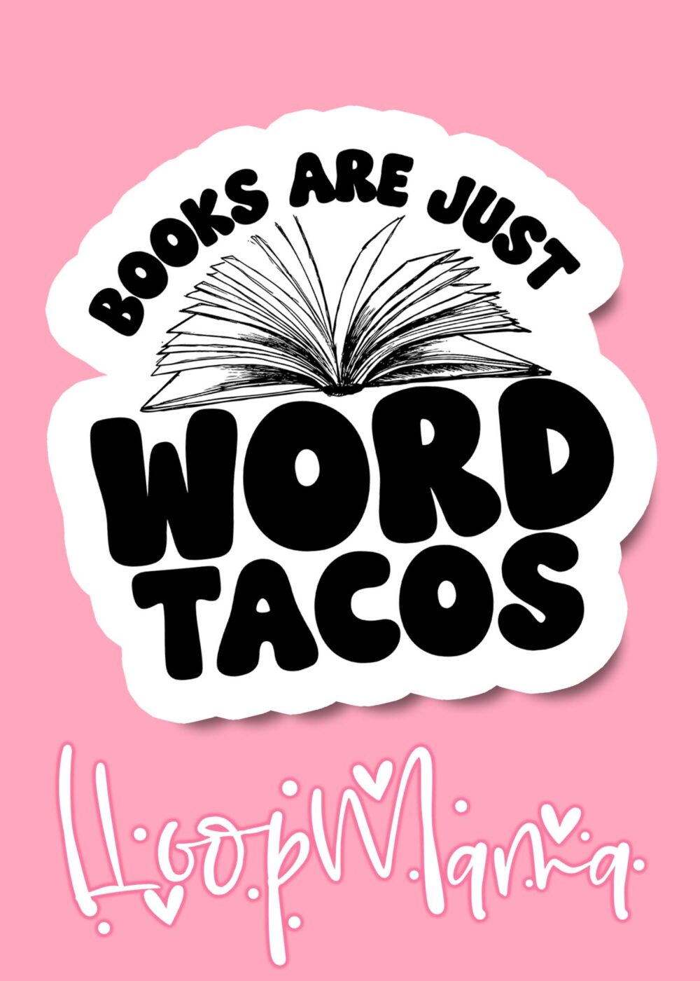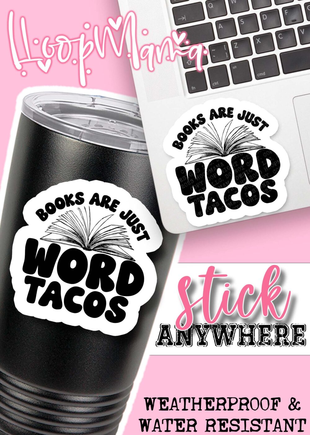DC23-0169 – Books Are Just Word Tacos – DIE CUT STICKER