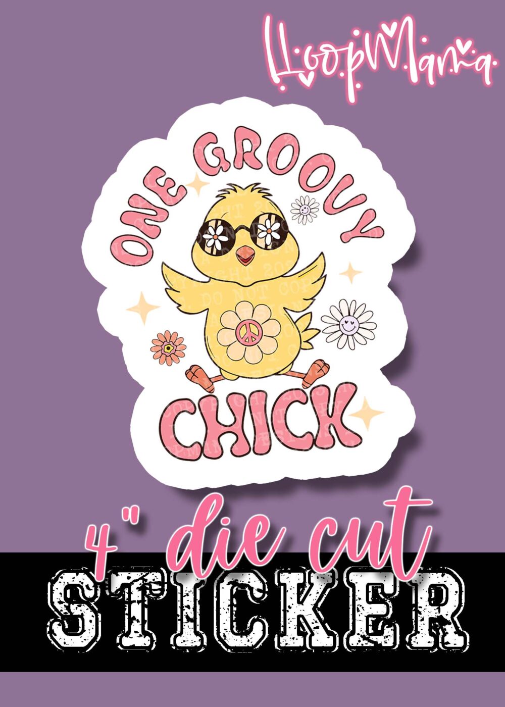 DC23-0179- One Groovy Chick – DIE CUT STICKER