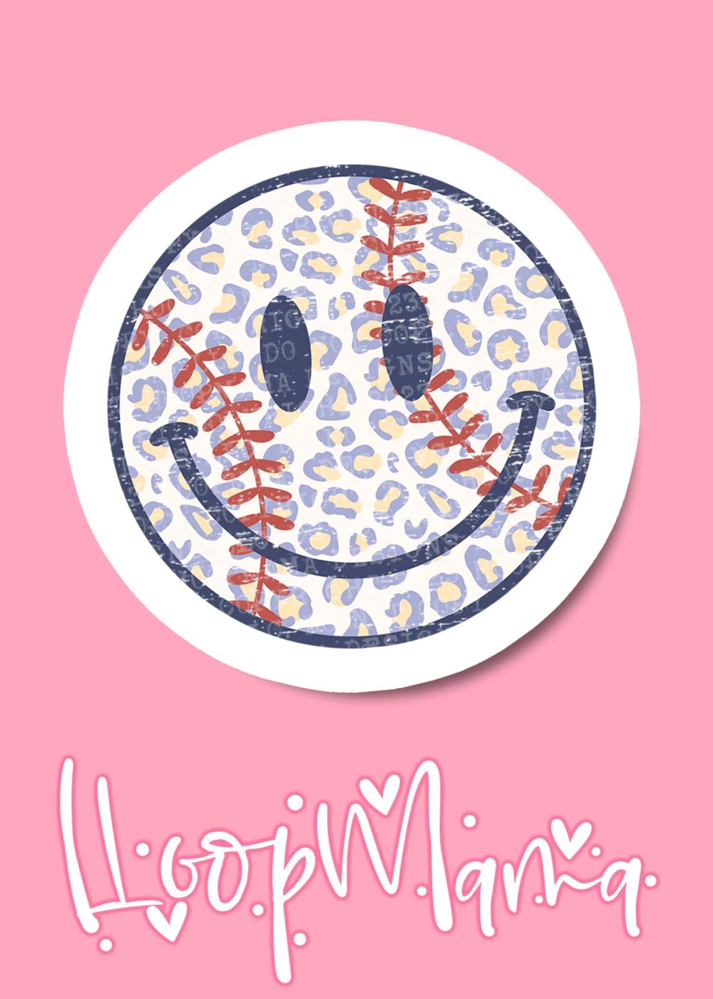 DC23-0226- Smile Face Baseball Leopard – DIE CUT STICKER
