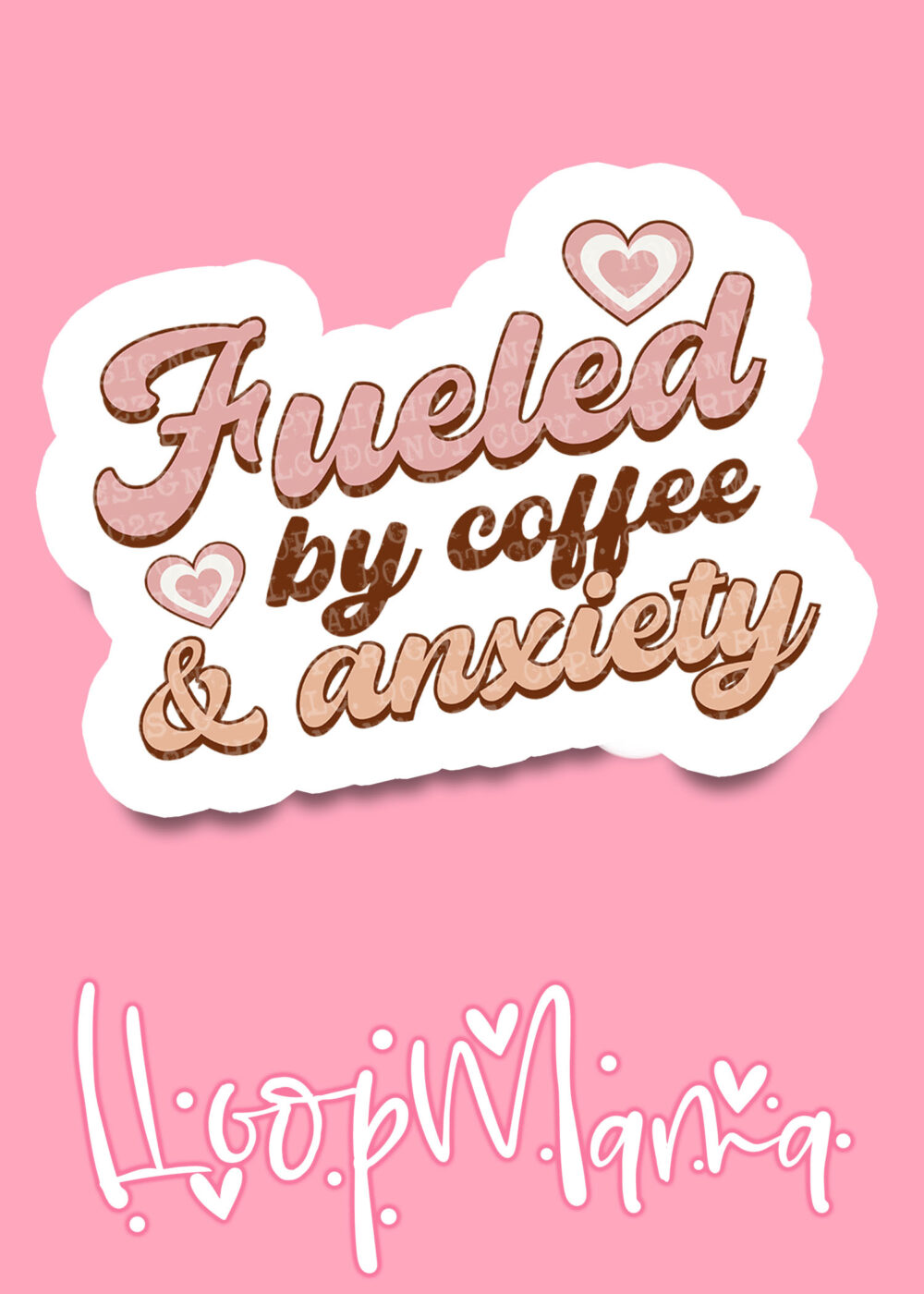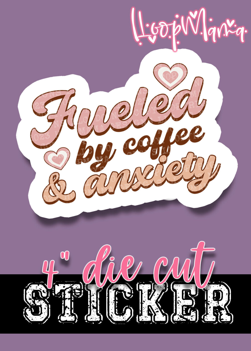 DC23-0342 – Fueled By Coffee And Anxiety – DIE CUT STICKER