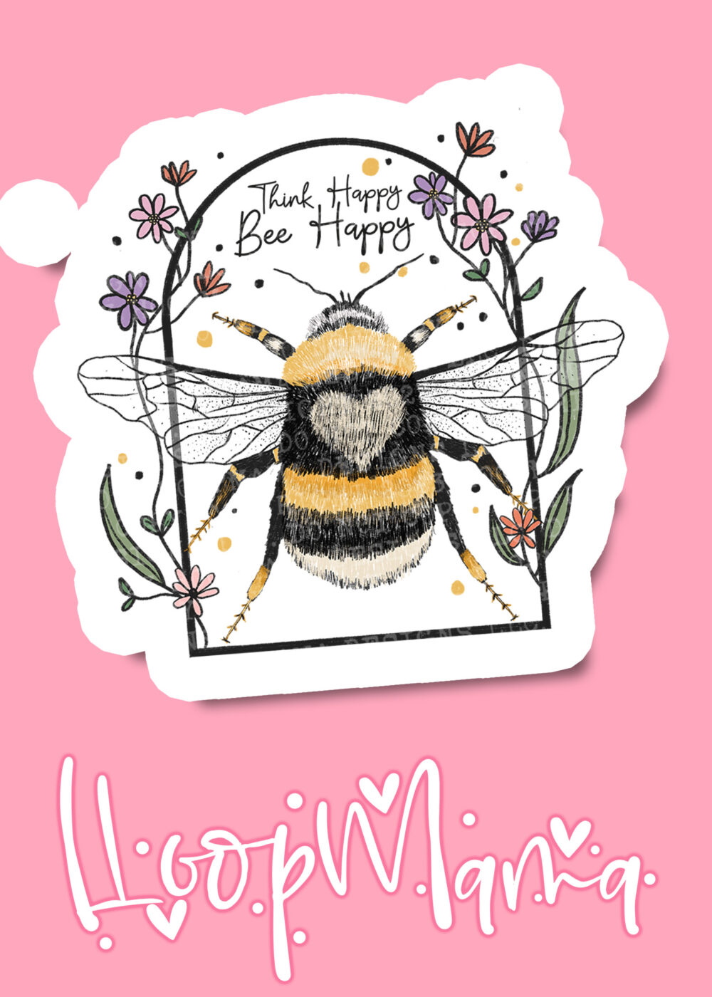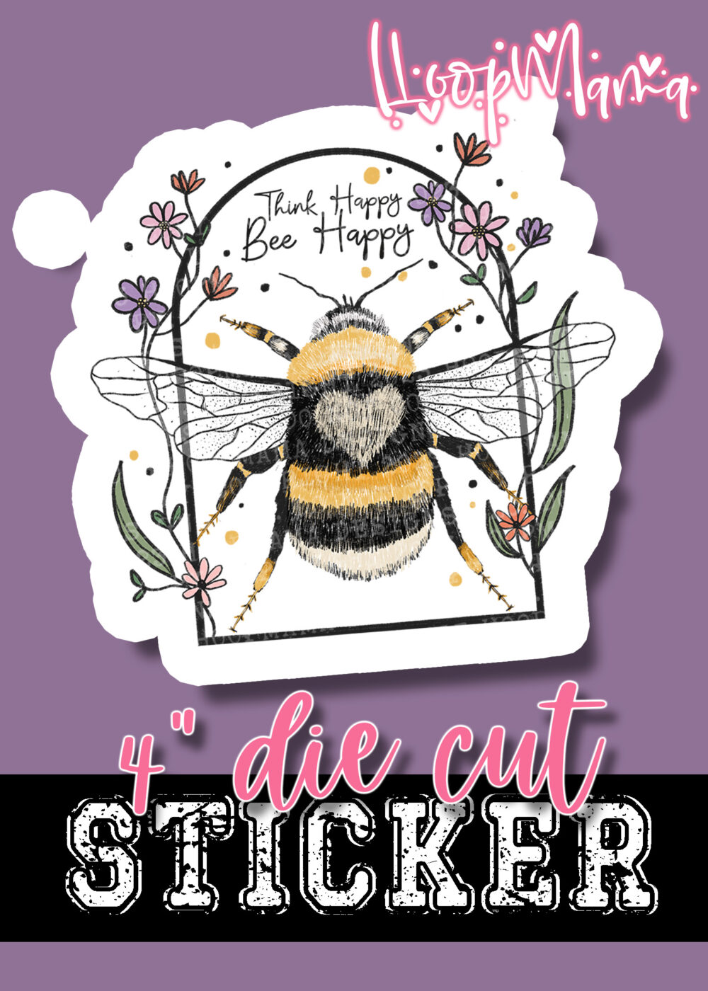 DC23-0355 – Think Happy Bee Happy – DIE CUT STICKER