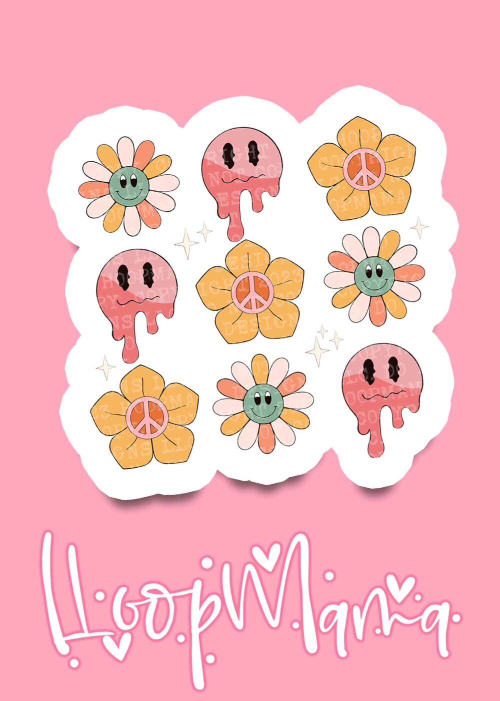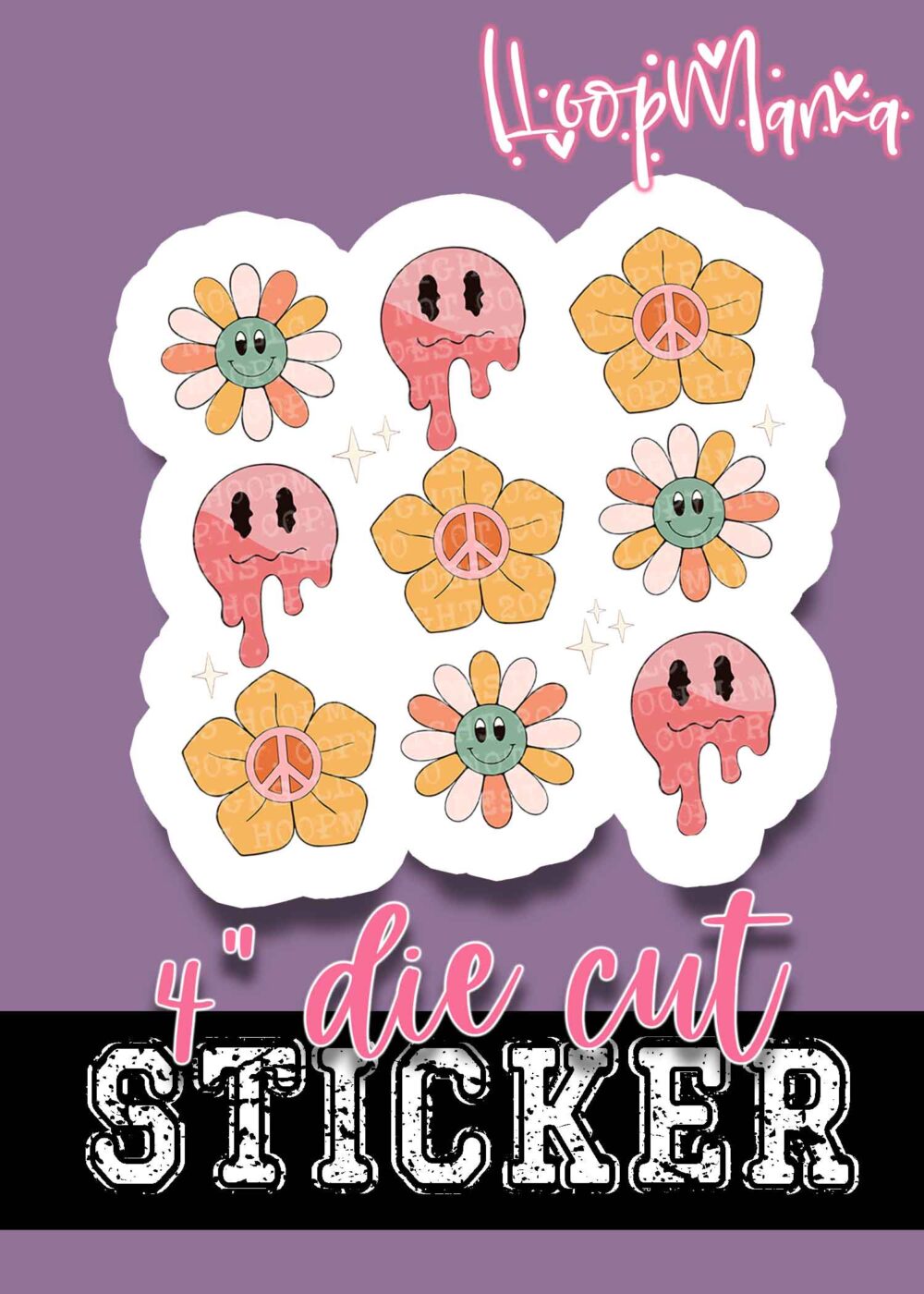 DC23-0416 – Smile Flowers Retro – DIE CUT STICKER