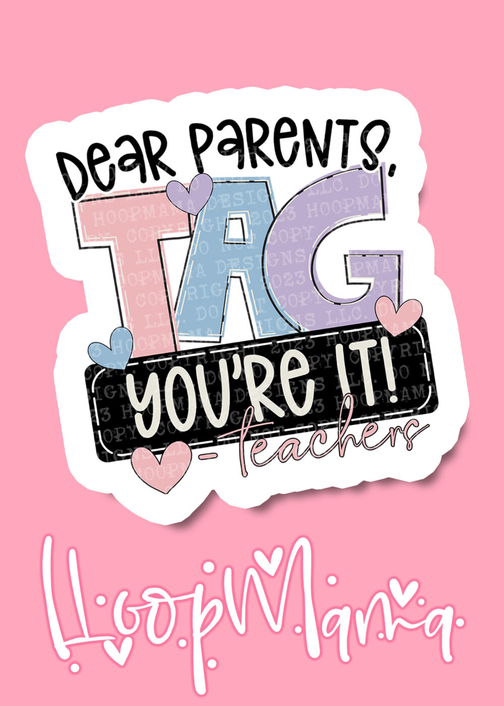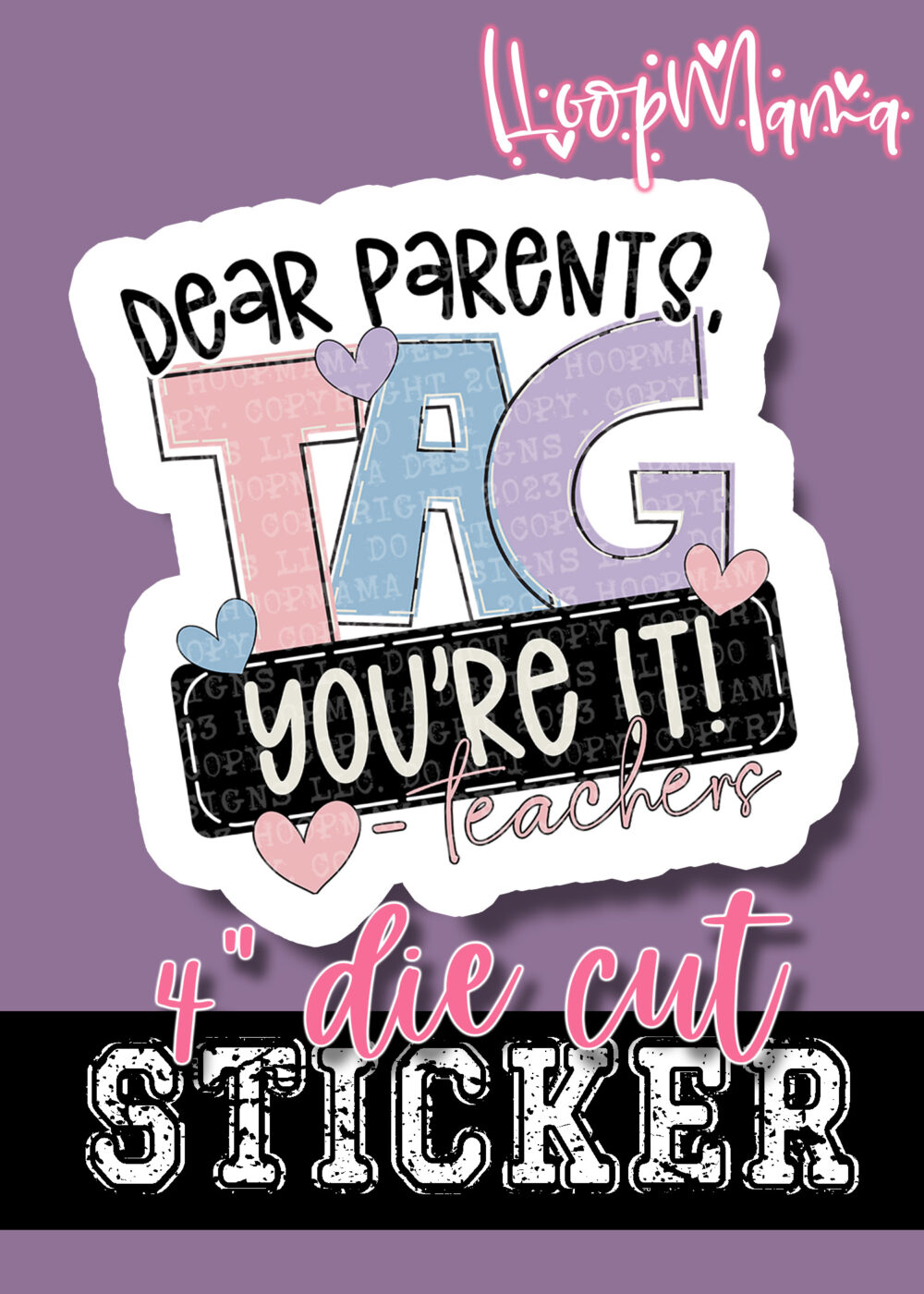 DC23-0616 – Dear Parents Tag You’re It – DIE CUT STICKER