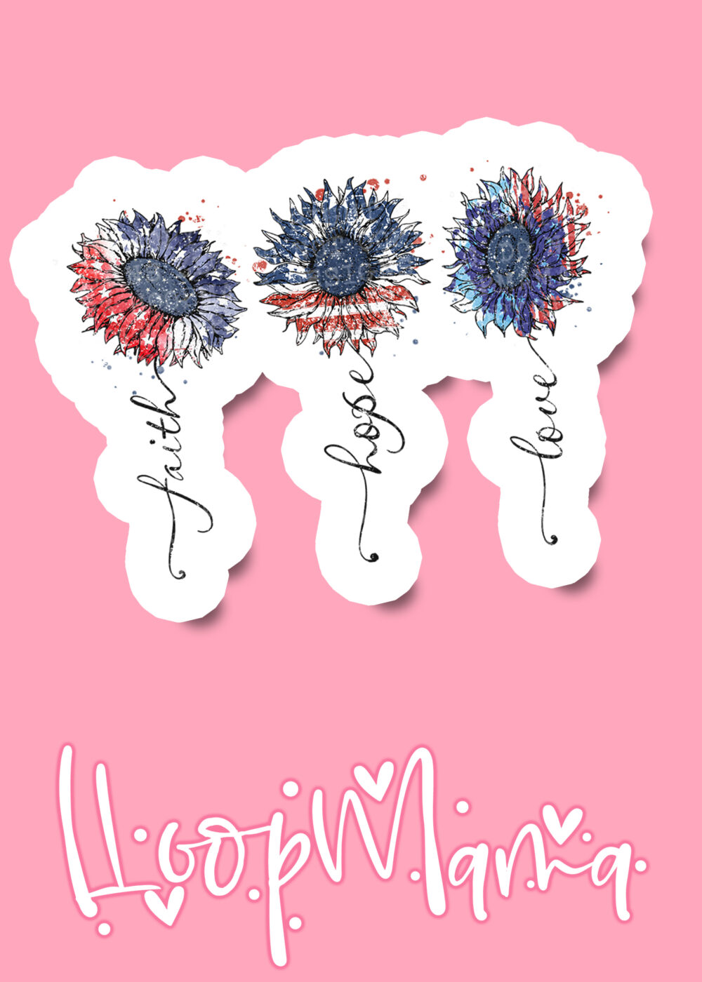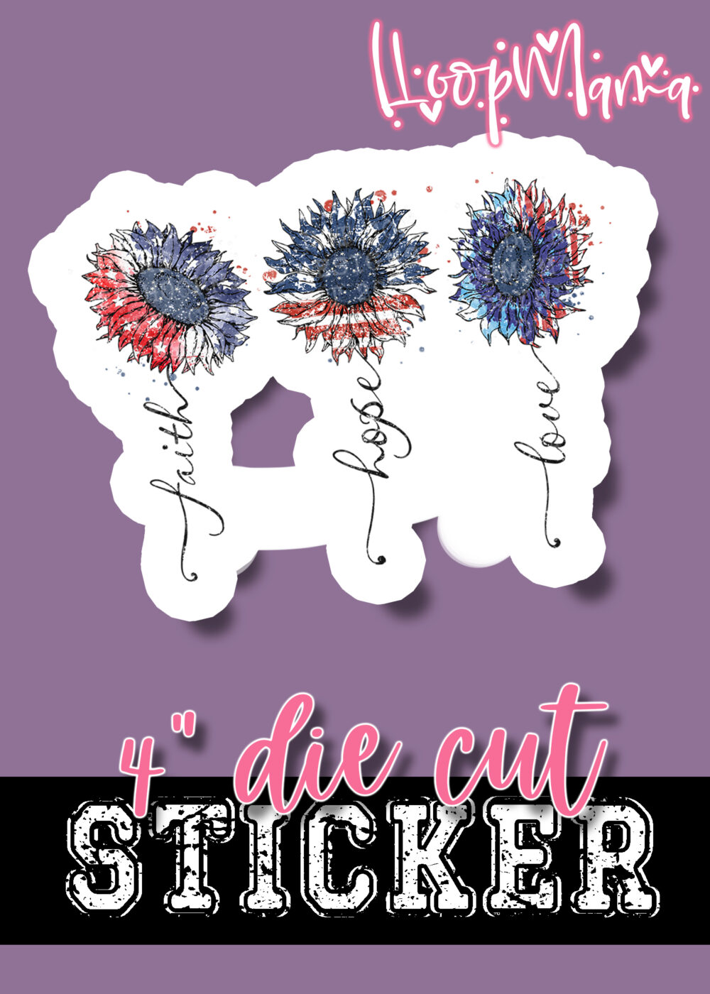 DC23-0748 – Faith Hope Love Sunflower Patriotic – DIE CUT STICKER