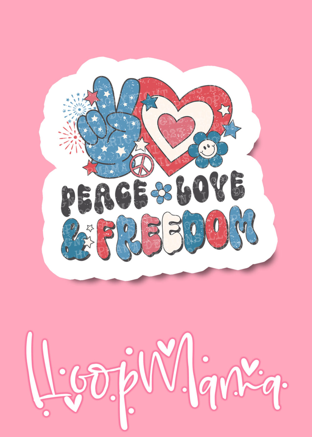 DC23-0750 – Peace Love Freedom – DIE CUT STICKER