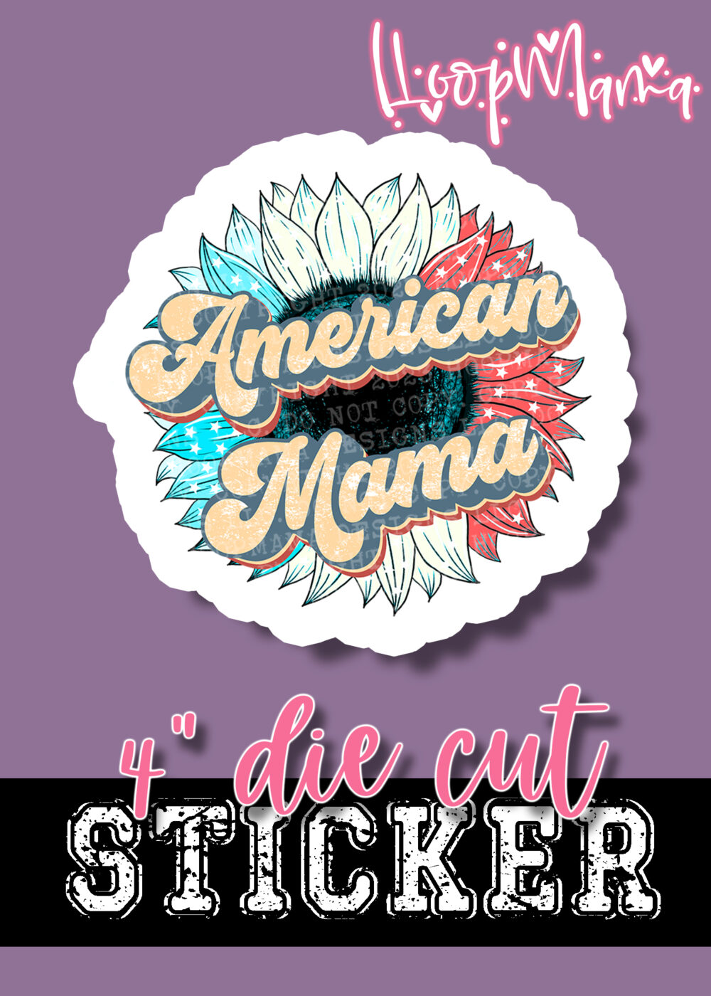 DC23-0755 – American Mama Patriotic Sunflower- DIE CUT STICKER