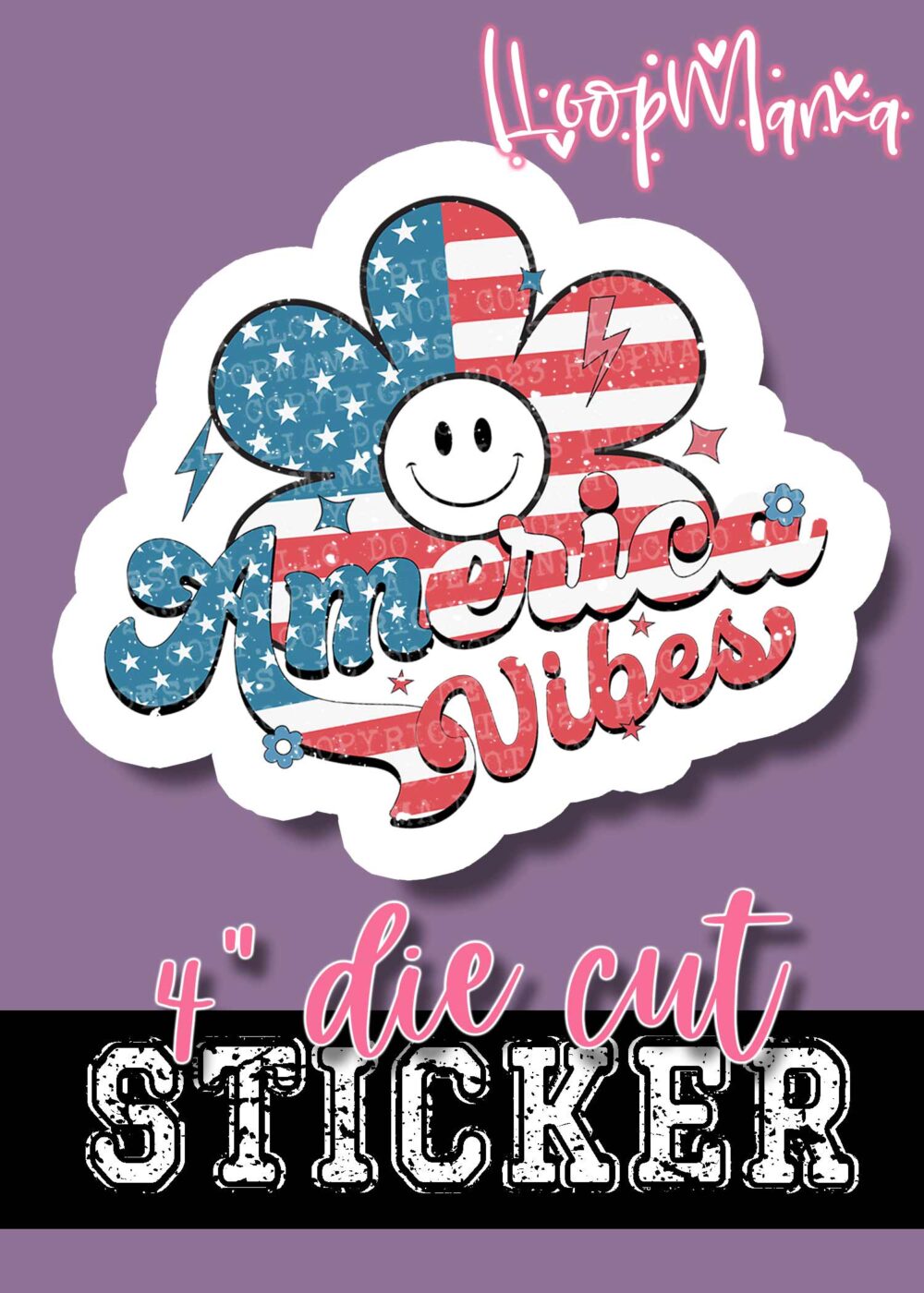 DC23-0817 – America Vibes Flower – DIE CUT STICKER