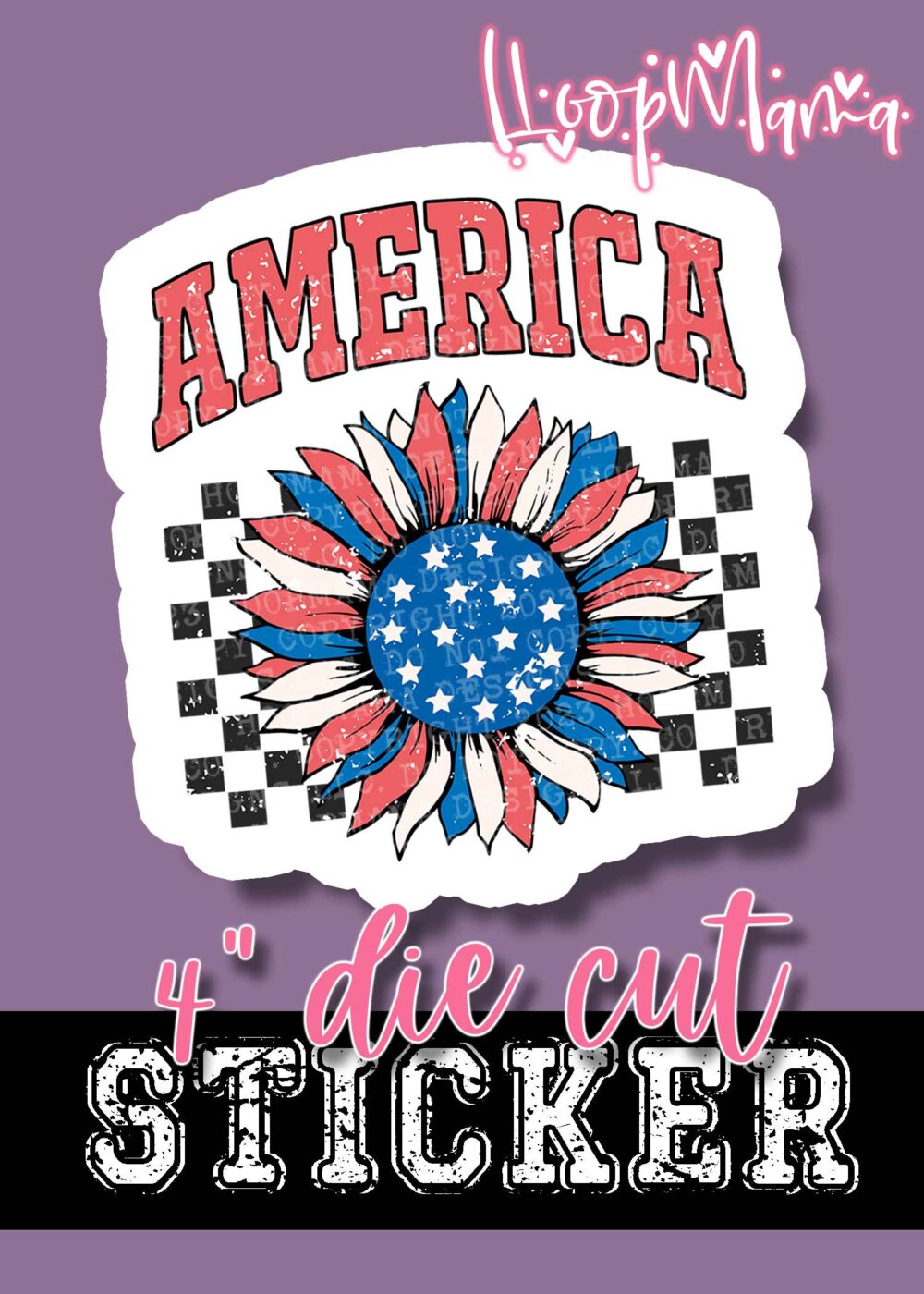 DC23-0845 – America With Sunflower – DIE CUT STICKER