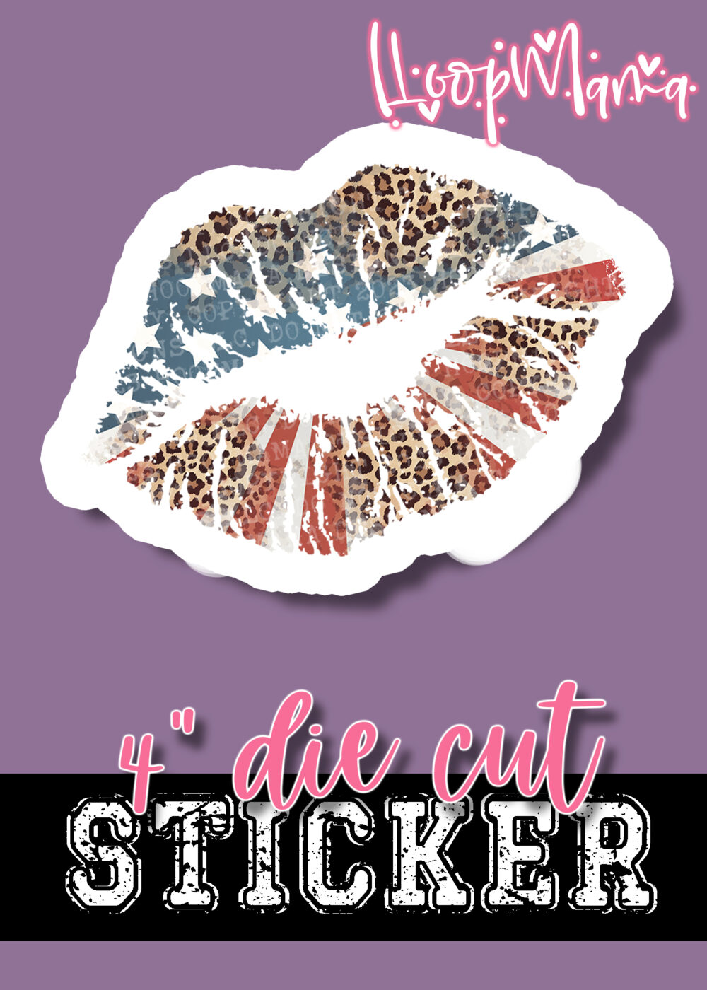 DC23-0859 – Cheetah American Flag Lips – DIE CUT STICKER