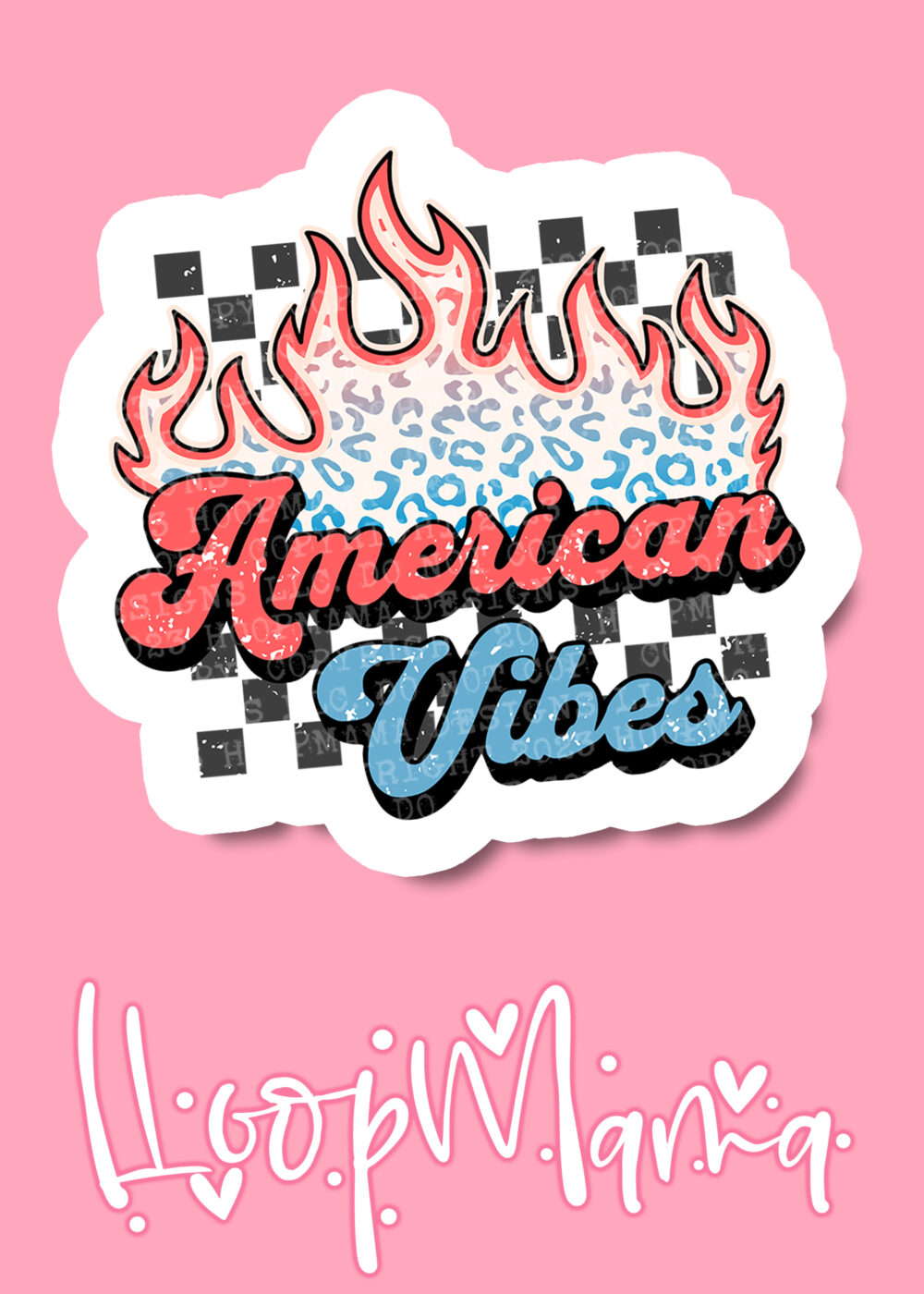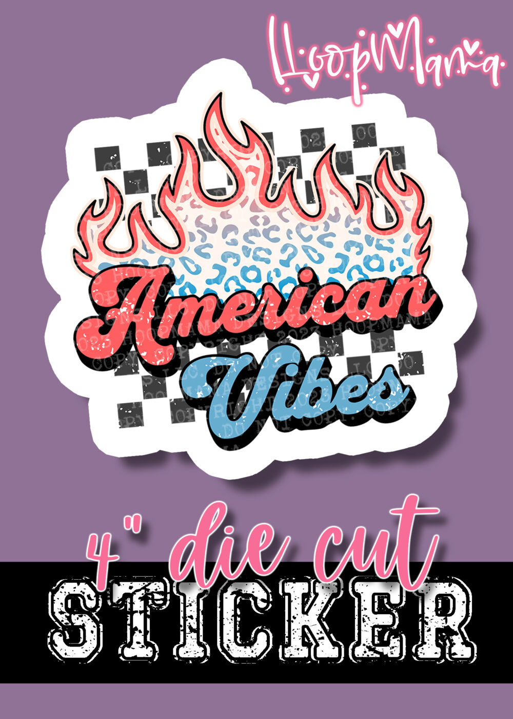 DC23-0879 – American Vibes Flames – DIE CUT STICKER