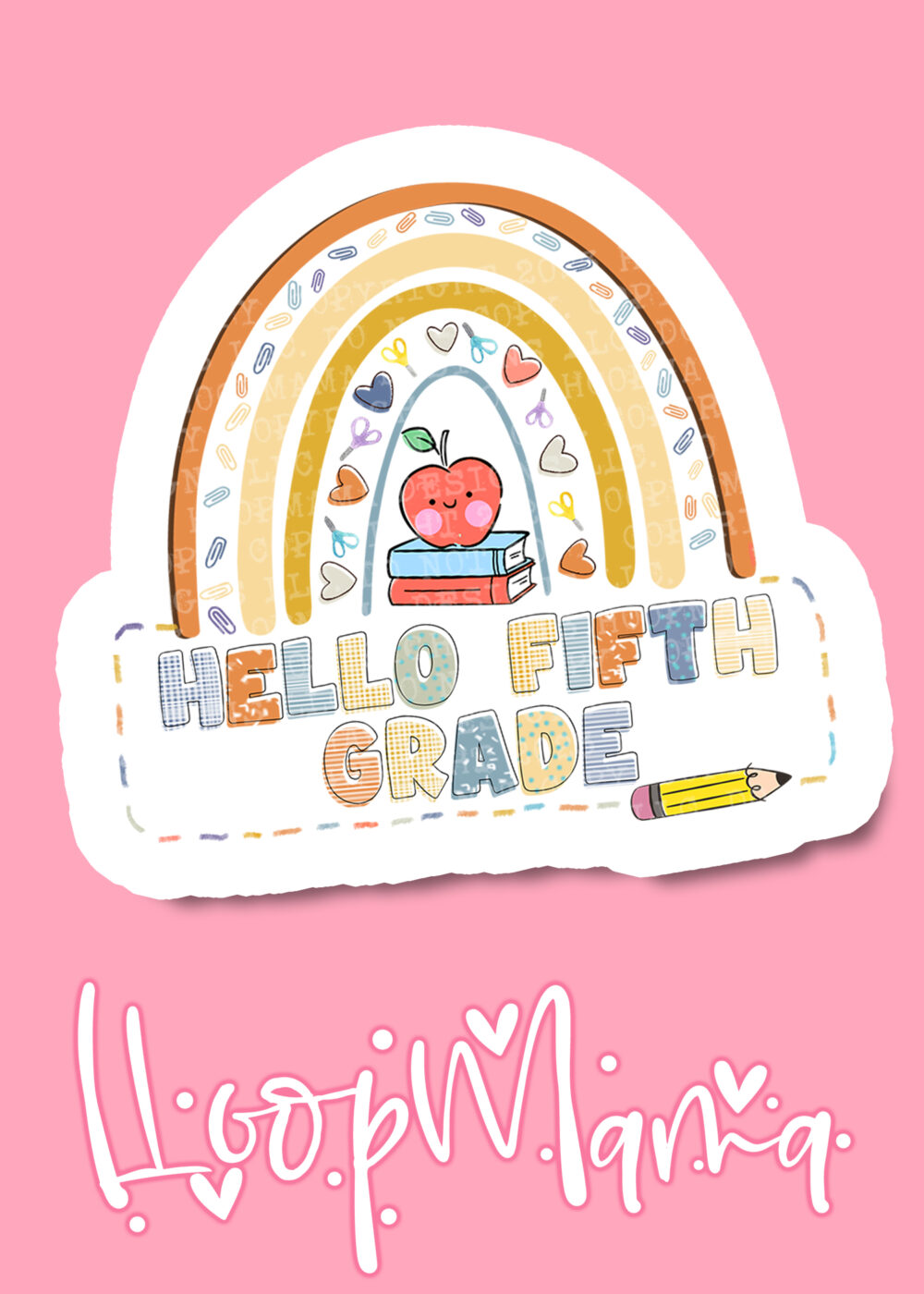 DC23-0988 – Hello Fifth Grade Rainbow – DIE CUT STICKER