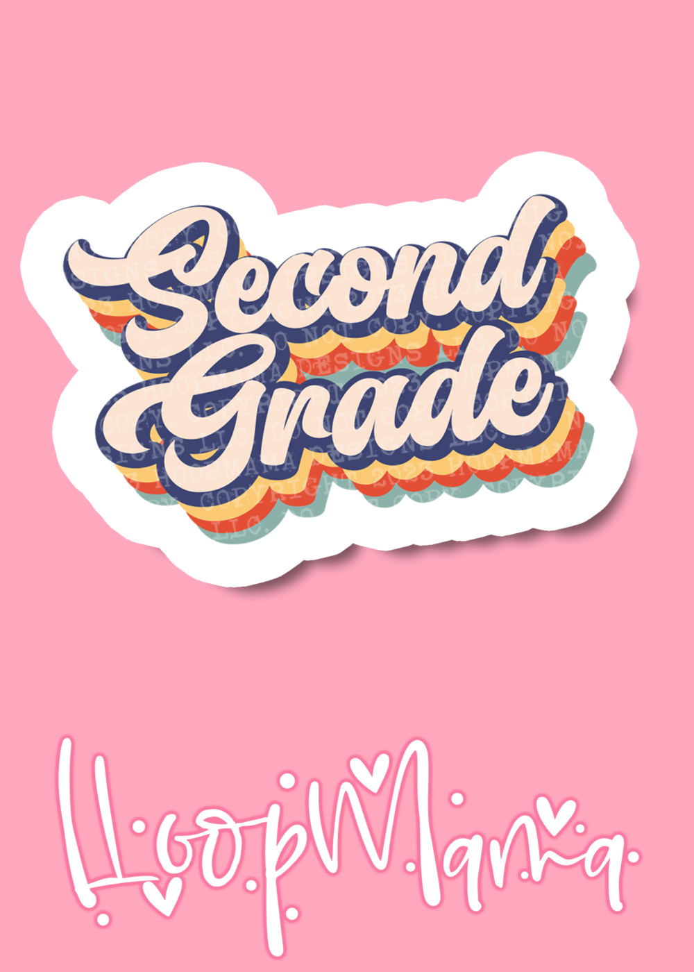 DC23-0999 – Second Grade Retro – DIE CUT STICKER