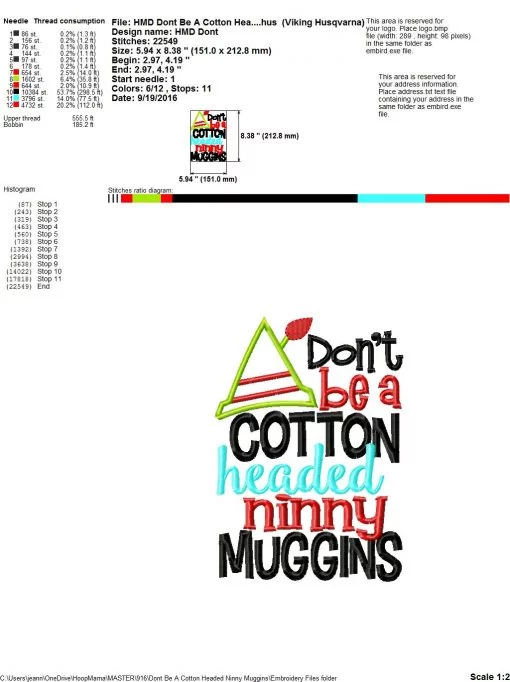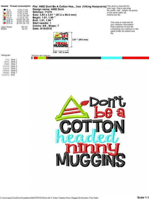 Don’t Be A Cotton Headed Ninny Muggins – Embroidery and Cutting Options