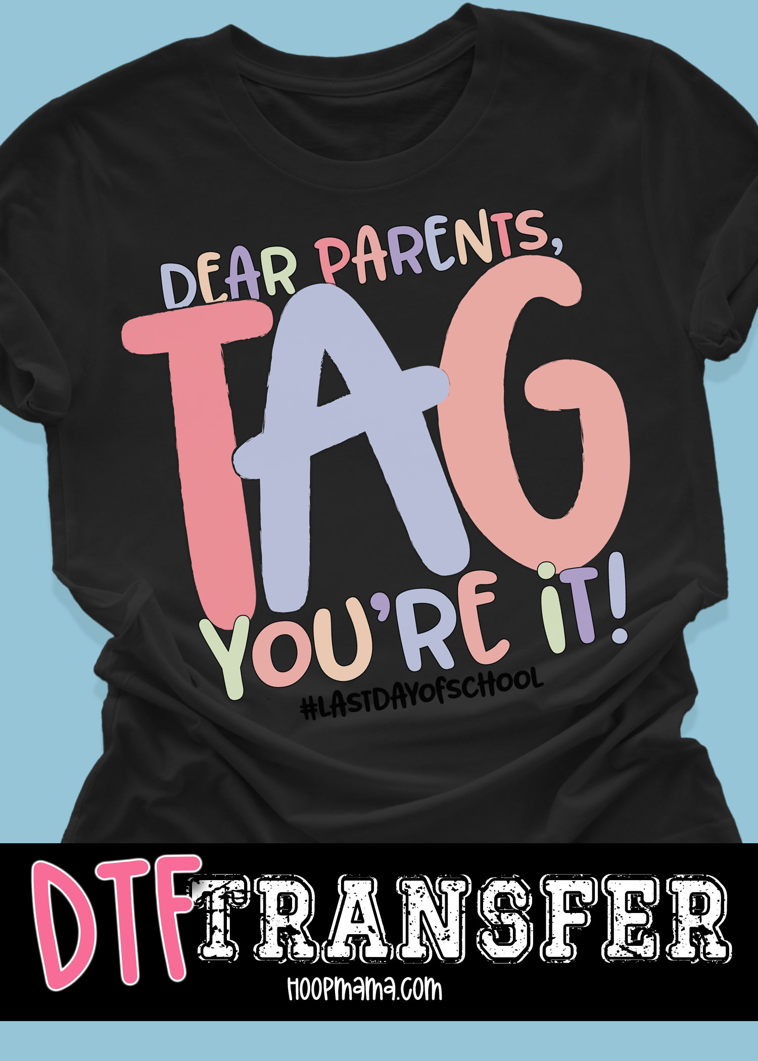 DTF-B25-APR15 – Dear Parents Tag Youre It – DTF TRANSFER