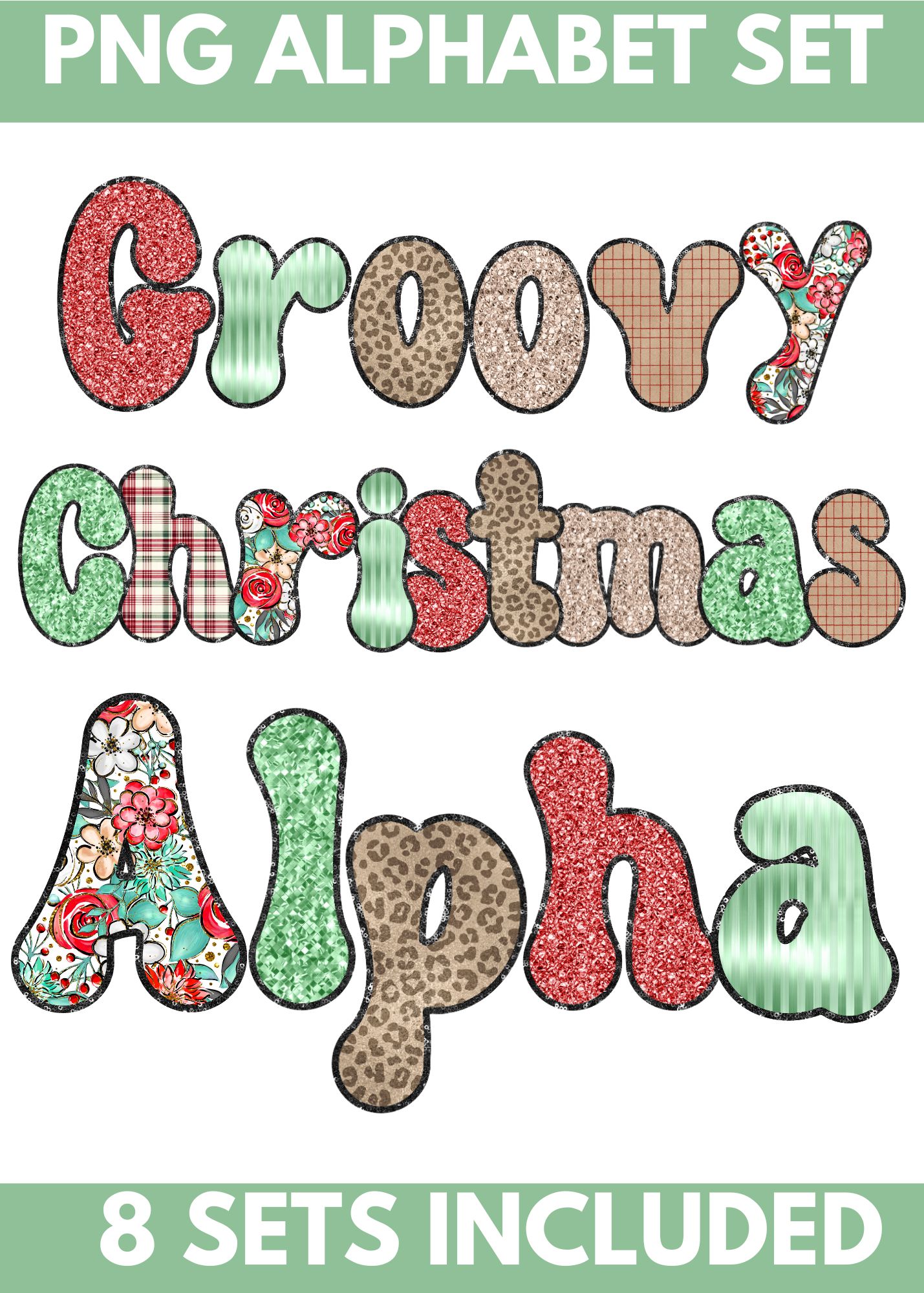 Groovy Christmas PNG Alpha Font – 8 Complete Sets – DIGITAL DOWNLOAD
