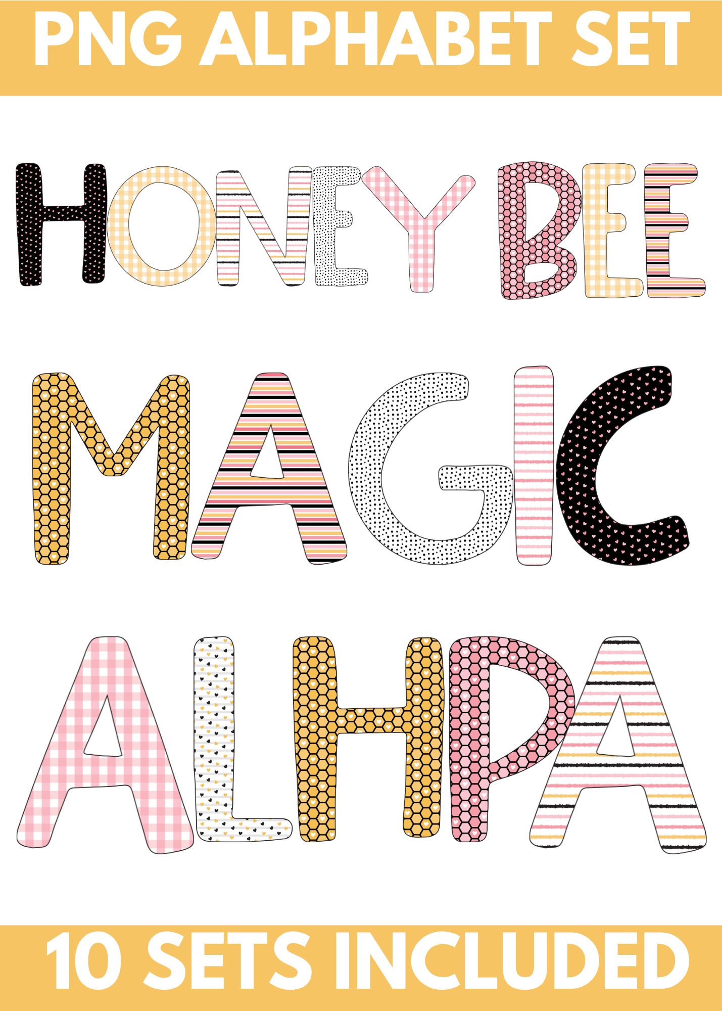 Honey Bee Magic PNG Alpha Font – 10 Complete Sets – DIGITAL DOWNLOAD