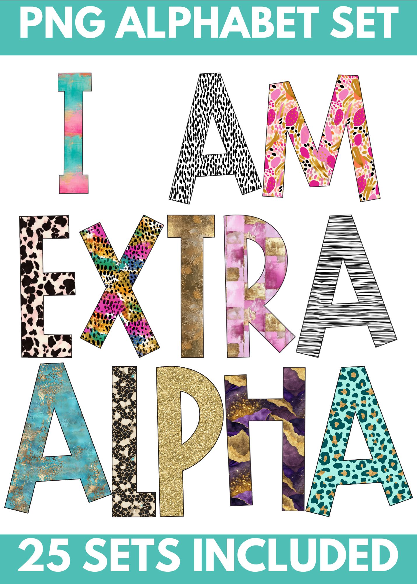 I Am Extra PNG Alpha Font – 25 Complete Sets – DIGITAL DOWNLOAD