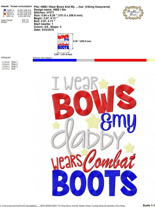 I Wear Bows And My Daddy Wears Combat Boots – Embroidery and Cutting Options