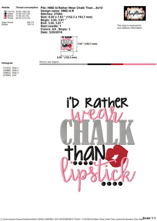 I’d Rather Wear Chalk Than Lipstick- Embroidery and Cutting Option