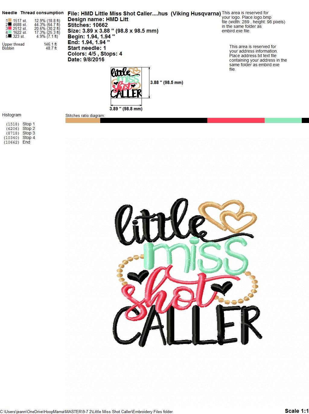 Little Miss Shot Caller – Embroidery and Cutting Options