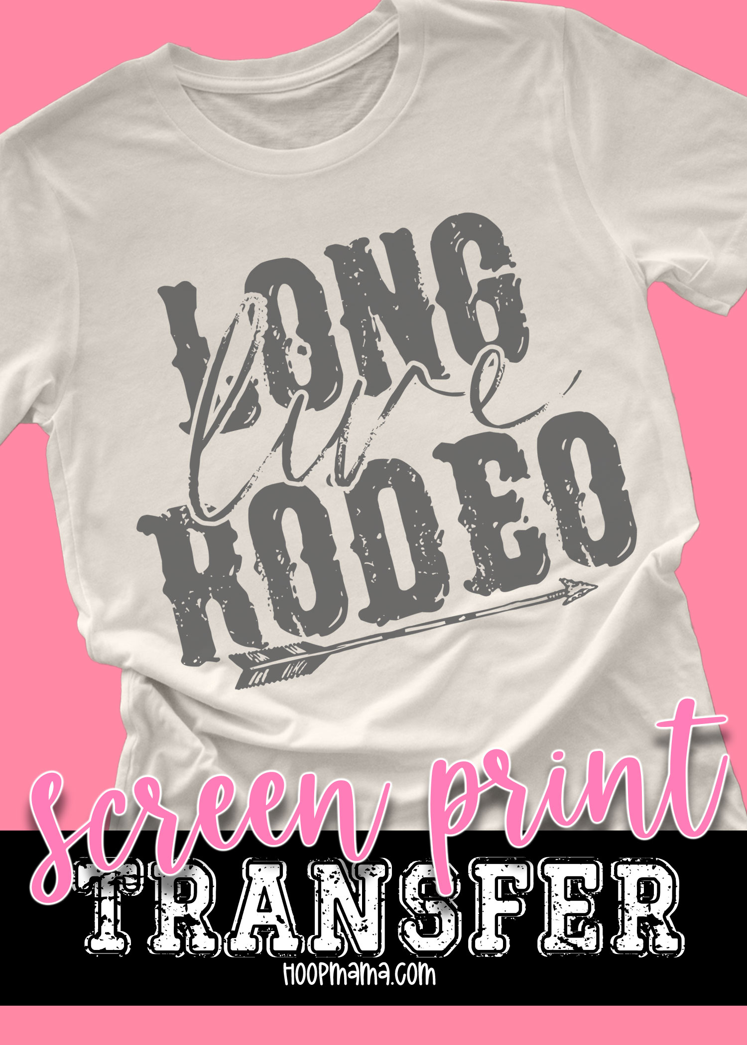 SPT-ES3C1 – Long Live Rodeo – METALLIC GUNMETAL – SCREEN PRINT TRANSFER – 22-JAN06