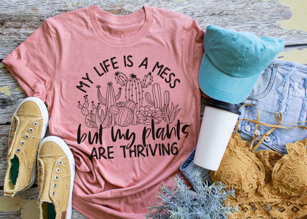SPT-H2F3 – My Life Is A Mess But My Plants Are Thriving – BLACK – 10.5″ – SCREEN PRINT TRANSFER