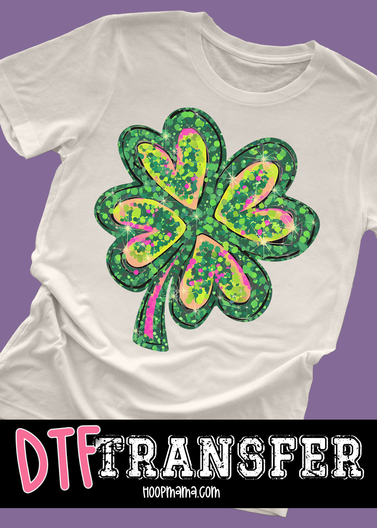 N25-FEB031 – Glitter Pink Shamrock – DTF TRANSFER