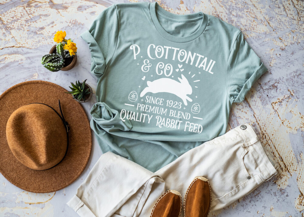 SPT-D2C1 – P Cottontail & co – WHITE – 10.5″ – SCREEN PRINT TRANSFER