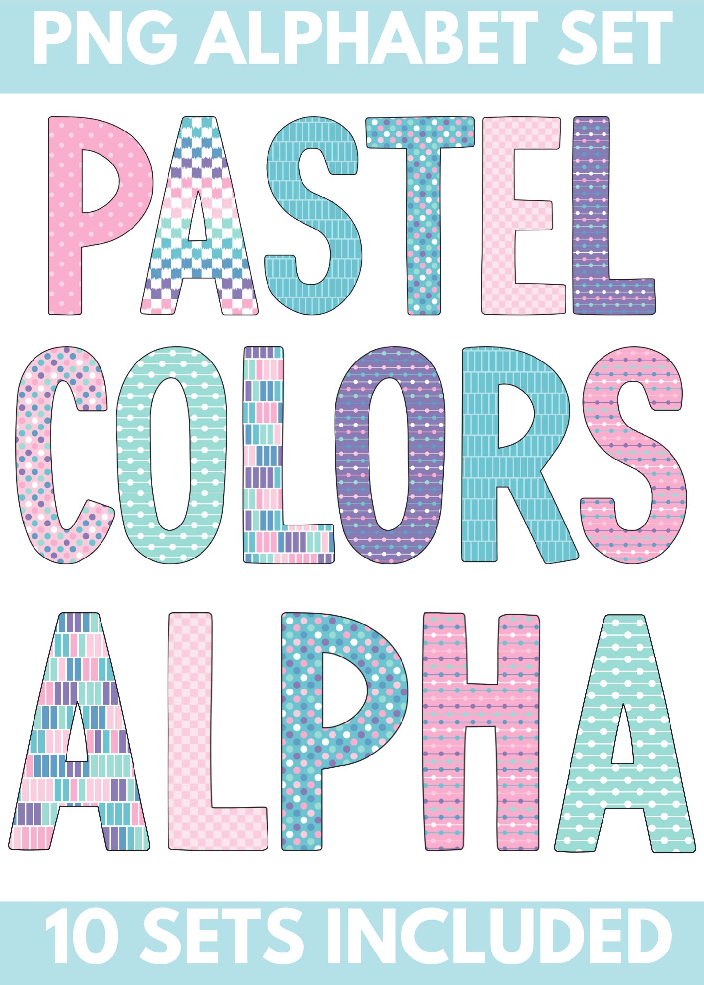 Pastel Colors PNG Alpha Font – 10 Complete Sets – DIGITAL DOWNLOAD