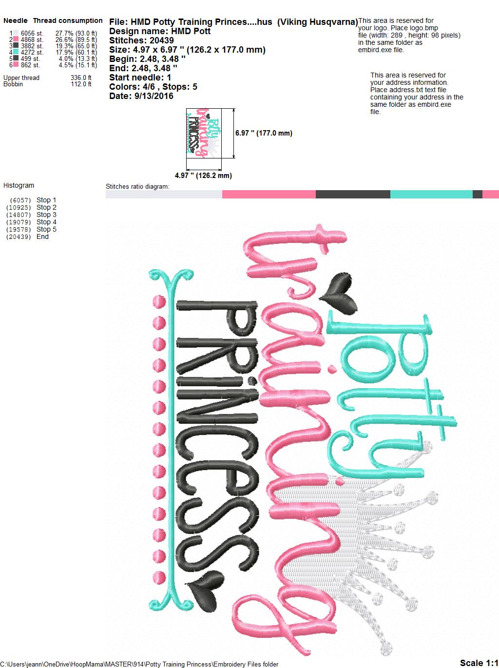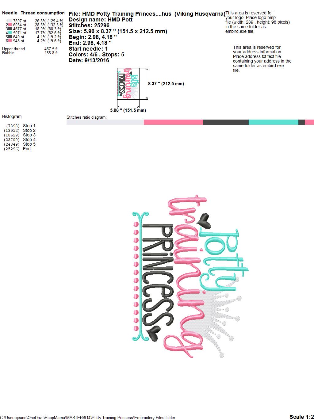 Potty Training Princess – Embroidery and Cutting Options