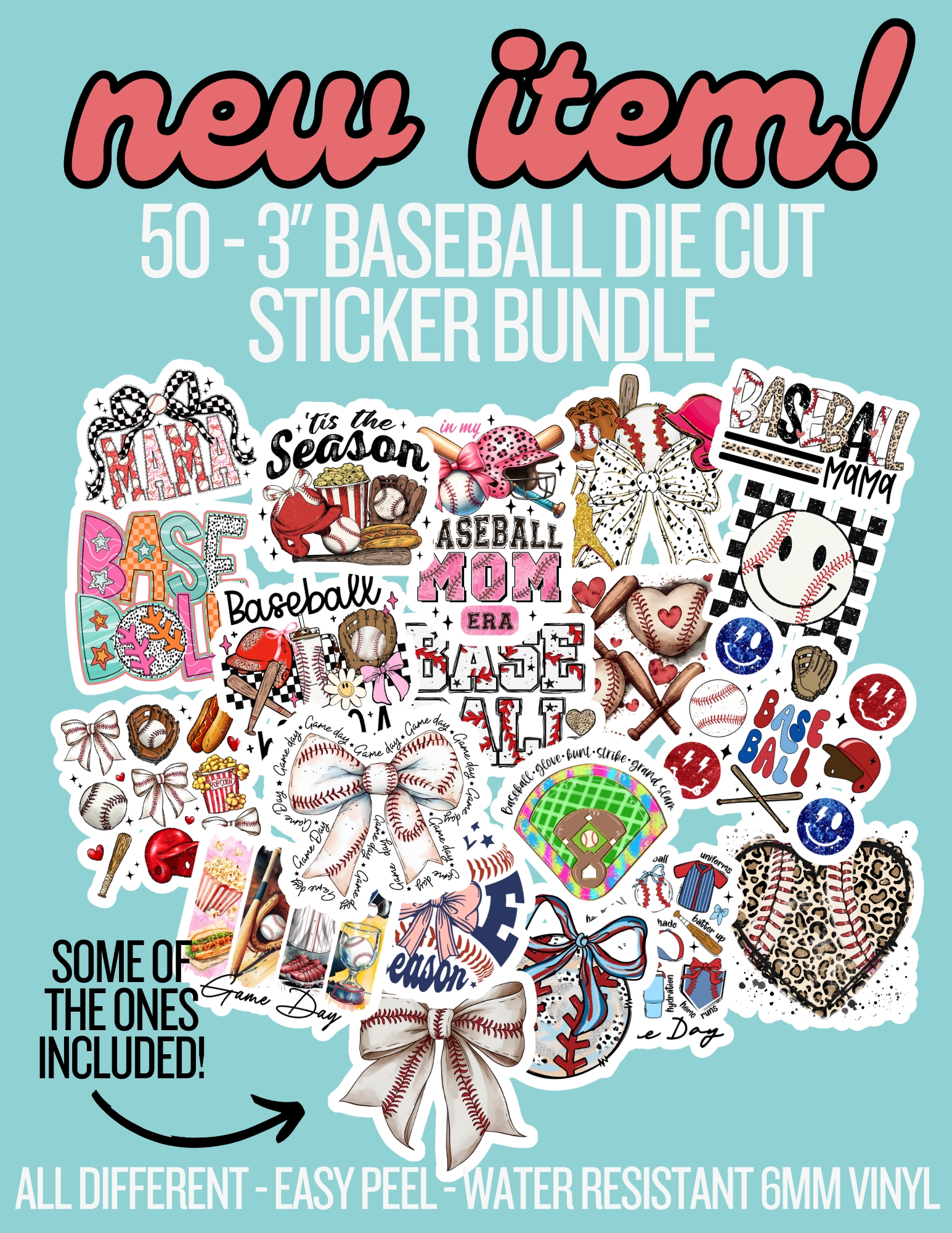SB-BAS01 – Baseball Sticker Bundle 50 – 3″ Die Cut Sticker Bundle – All Different!