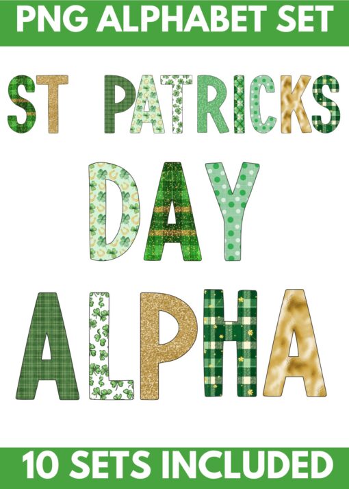 St Patricks Day PNG Alpha Font – 10 Complete Sets – DIGITAL DOWNLOAD