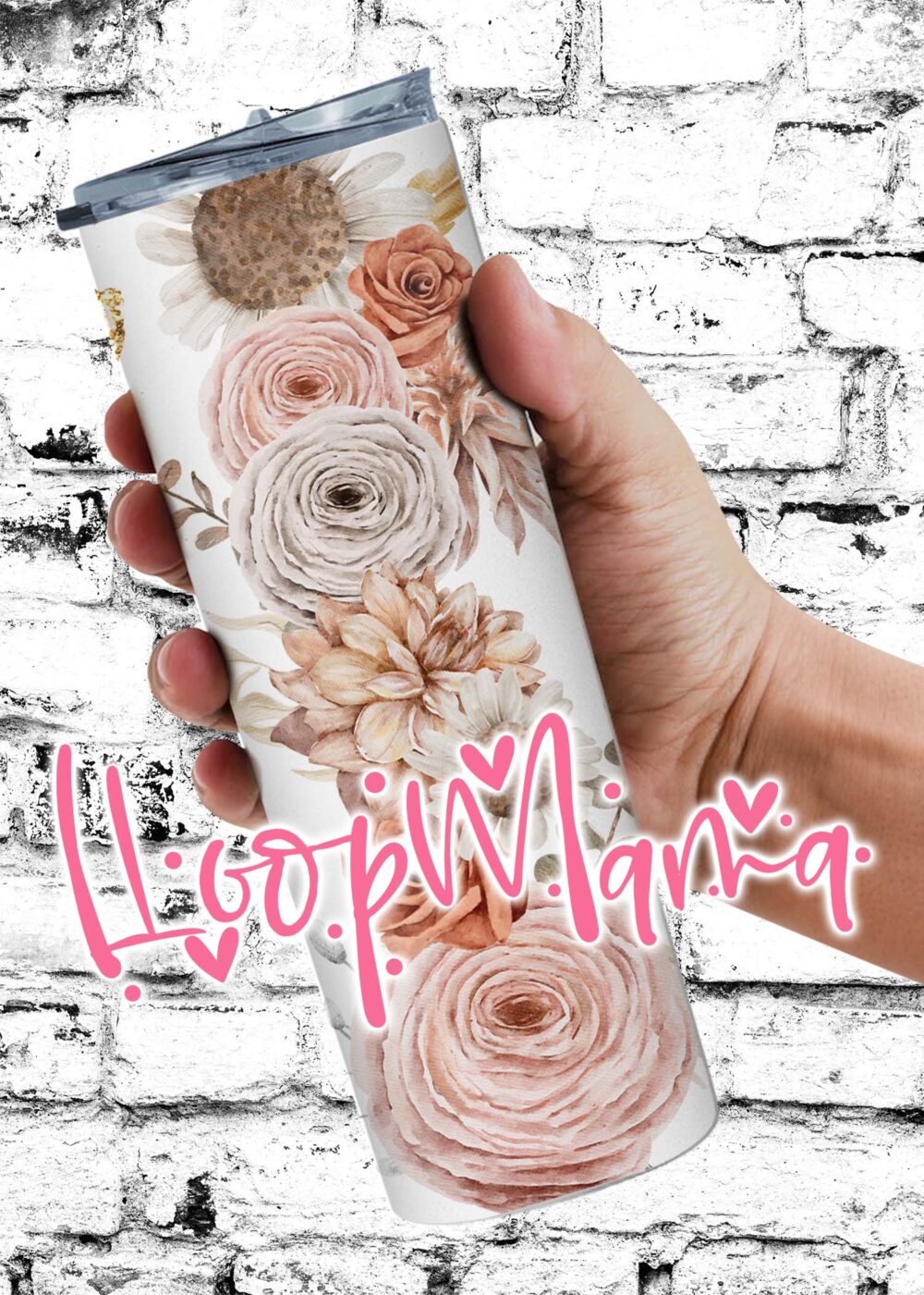 TW-0084 – Boho Pink Roses Gold Marble TUMBLER WRAP – XZ1X